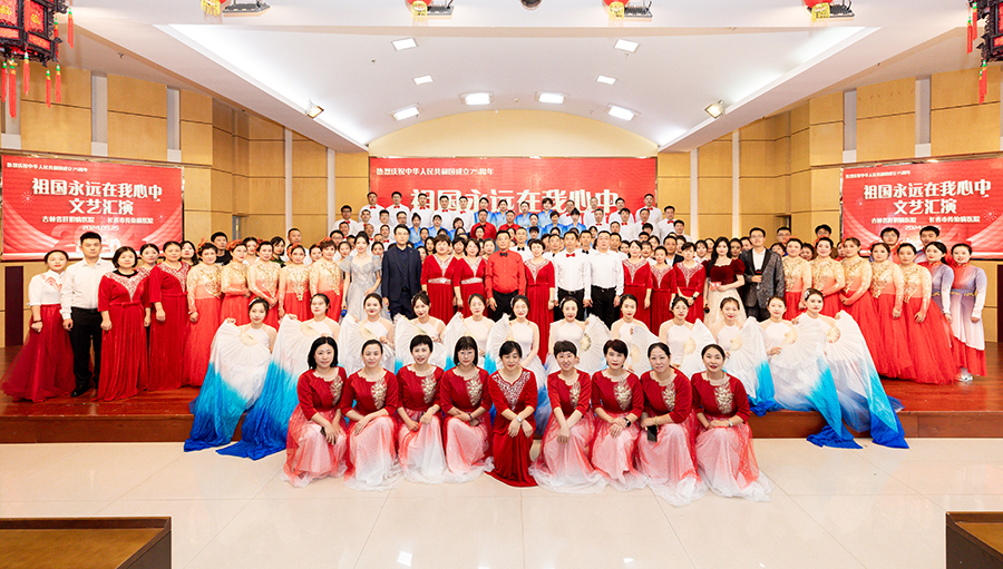 为庆祝中华人民共和国成立75周年,引导党员干部职工厚植爱国情怀,自觉融入新时代、逐梦新时代、建功新时代,不断提升凝聚力、向心力,按照长春市卫健委机关党委工作部署,经过91传媒 党委和吉林省肝胆病医院党委研究决定,于9月25日在吉林省肝胆病医院多功能厅联合举办“祖国永远在我心中”迎国庆主题文艺汇演,向祖国75华诞送上诚挚的祝福。91传媒 、吉林省肝胆病医院党委书记张皞男与两家医院领导班子成员、中层干部、护士长、职工代表参加此次活动。
