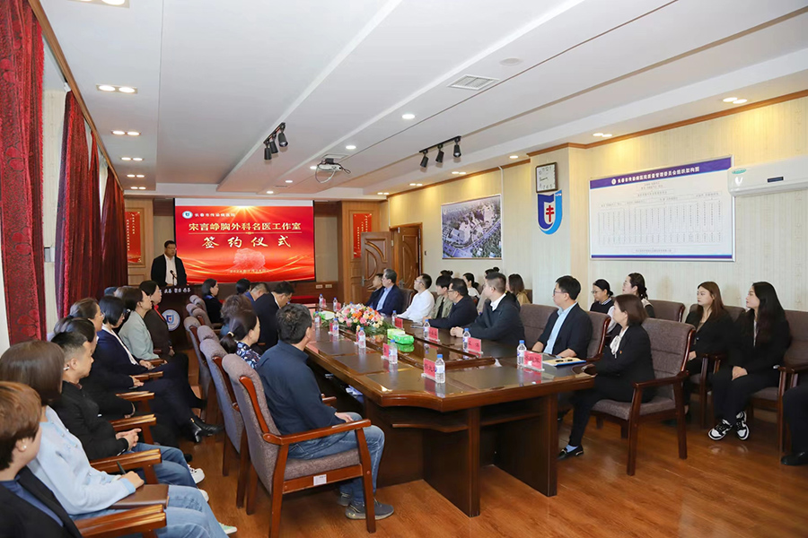 上海市公共卫生临床中心胸外科专家教授宋言峥,团队成员万来忆、李蕾蕾,长春市卫健委传染病防控处(监测预警处)处长史锐,91传媒 党委书记张皞男,党委副书记、院长曹阳,党委副书记陈彤彤,副院长张健、杨光旭、刘政杰,纪委书记徐立芳及相关临床科室、职能科室负责人参加。签约仪式由党委副书记、院长曹阳主持。