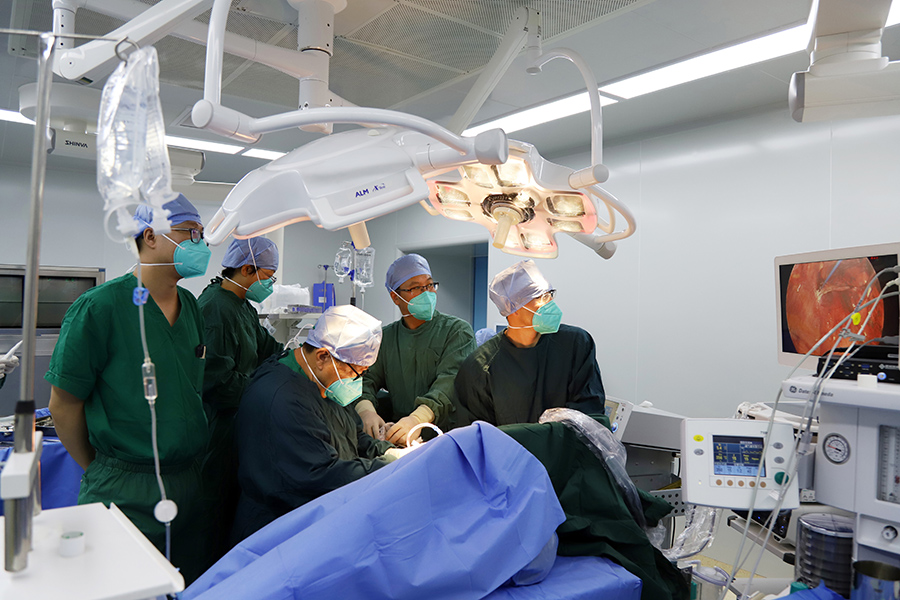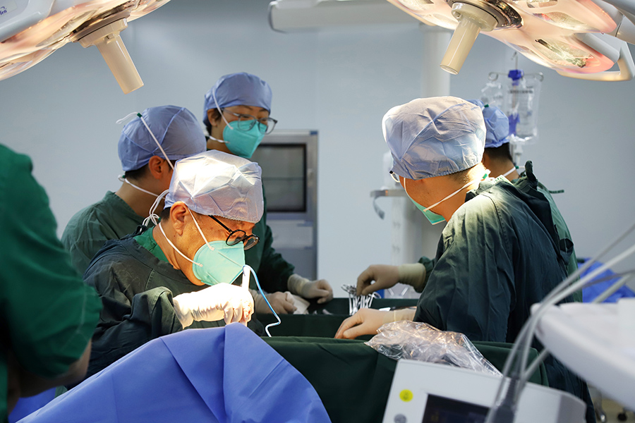 在宋言峥教授的指导下,胸外科手术团队快速准确地切除了目标肺部病变组织,最大限度地减少了肺损伤,做到解剖精细化、切除精准化,最终经过密切配合,顺利完成了这台解剖难度大、技术要求高的微创手术。