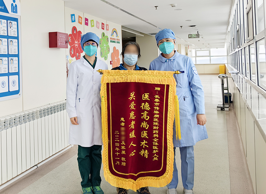 锦旗不仅是对医护人员专业技术的认可,更是对他们在治疗之外所付出的关心与帮助的最好见证。未来,在院党委的带领下,耐药科(六疗区)全体医护人员将继续秉承“以患者为中心”的服务理念,不断提升专业技术与服务水平,为患者提供全方位、人性化的医疗服务。