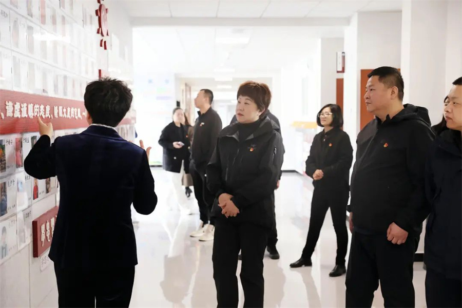 活动中,在张晶书记的带领下,陈彤彤副书记一行参观了学生手工墙、中医文化墙、图书馆以及教室等地。现场还聆听了学生背诵的古文篇章,蓬勃的精神风貌,感染了在场的每一个人。
