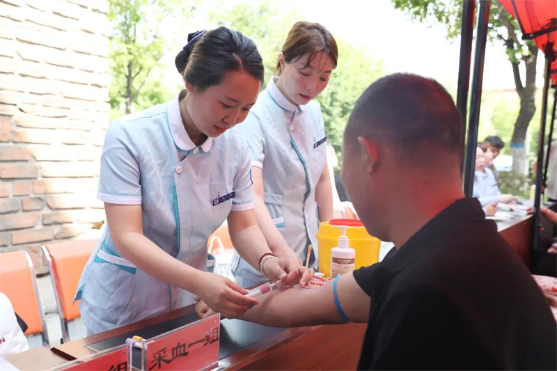 这边,护理部干事刘丹丹负责血氧检测,综合门诊护士长张琳爽负责血压检测。血液检测则由三组人员负责:护士何艳茹、耿一扬、孙晨负责抽血;综合办干事孟晴和邵茗琦一组、综合办干事段慧颖和检验科韩轶男一组,均负责登记和贴签;综合办干事董建航、检验科闫峰则分别负责登记和贴签。在医护人员的高效协作下,103人次居民享受到血液检测服务。