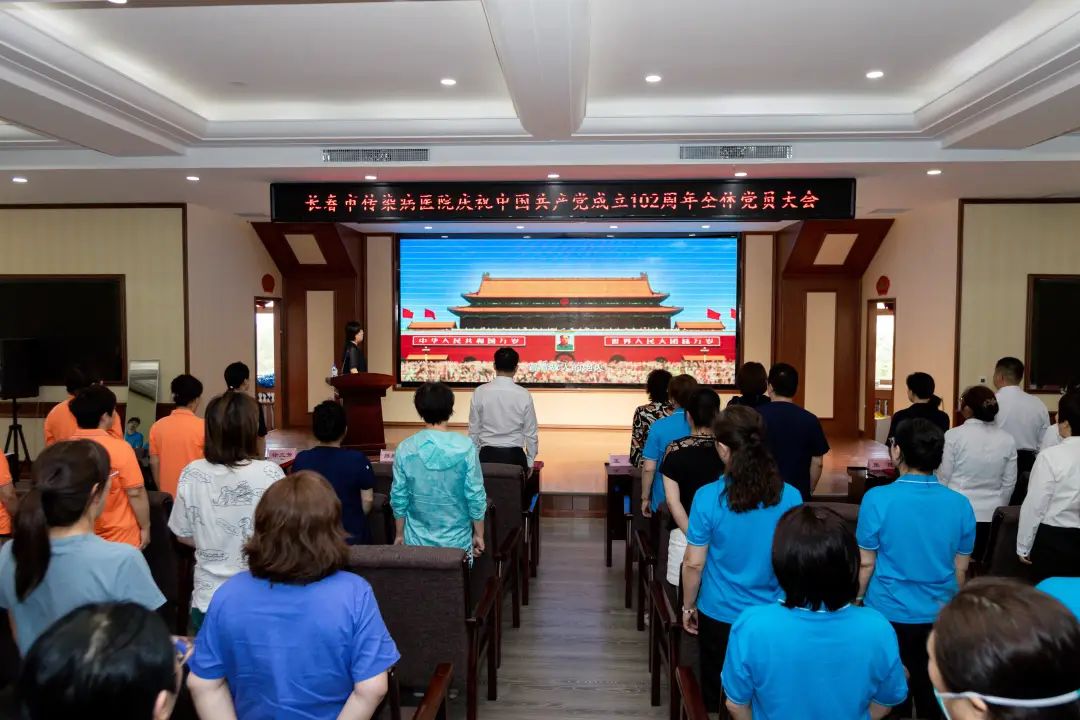 为庆祝中国共产党成立102周年,7月5日下午,91传媒 召开“学思想凝心聚力 重实践开创未来”主题党日暨庆祝中国共产党成立102周年全体党员大会。长春市卫健委机关党委专职副书记孟莉出席大会,医院党委班子成员、各党支部书记、全体党员、入党积极分子及共青团员等参加大会。大会由院党委副书记陈彤彤主持。