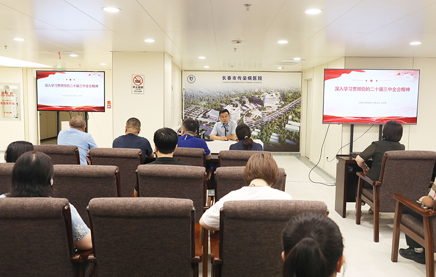张皞男书记要求,全院干部职工要准确把握党的二十届三中全会对医疗工作的部署要求,准确领会、理解、把握全会精神实质,以钉钉子精神抓好改革任务落实,以实际行动坚定拥护“两个确立”、坚决做到“两个维护”,坚持守正创新、实干笃行,不断推进诊疗技术创新,优化医疗服务模式,不断提升医疗服务质量,以高质量党建引领医院高质量发展,不断提升医院传染病“防诊治康”能力和医疗核心竞争力,为守护人民健康保驾护航。