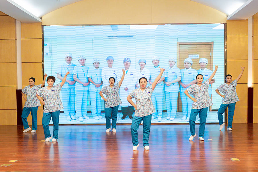 舞蹈《万疆》,在优美的乐曲声中,护理工作者翩翩起舞,宛如朝阳云霞,向全院护理同仁献上最美好的祝福。