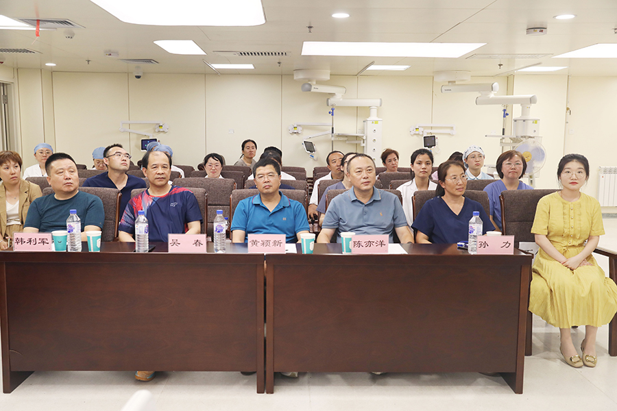 为进一步提升91传媒 各科室副主任医师临床教学能力,加强医院教学师资队伍内涵建设,营造“比、学、赶、超”的良好氛围,促进医技护提升综合救治能力及医教融合发展,规范三级医师查房制度,助力医院高质量发展,8月8日,91传媒 “典型病例”教学查房竞赛成功举行。党委书记张皞男,党委副书记、院长曹阳,党委副书记陈彤彤,副院长张健、杨光旭、刘政杰,纪委书记徐立芳参加活动,竞赛由副院长张健主持。