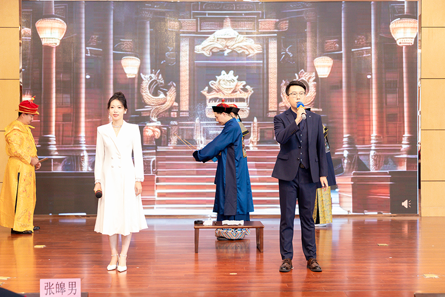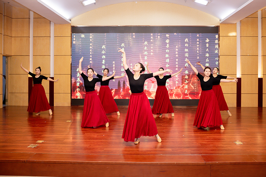 此次文艺汇演中的节目类型丰富多彩,既有传统的歌舞、诗朗诵表演,也有充满新意的舞台剧、快板、时装秀。