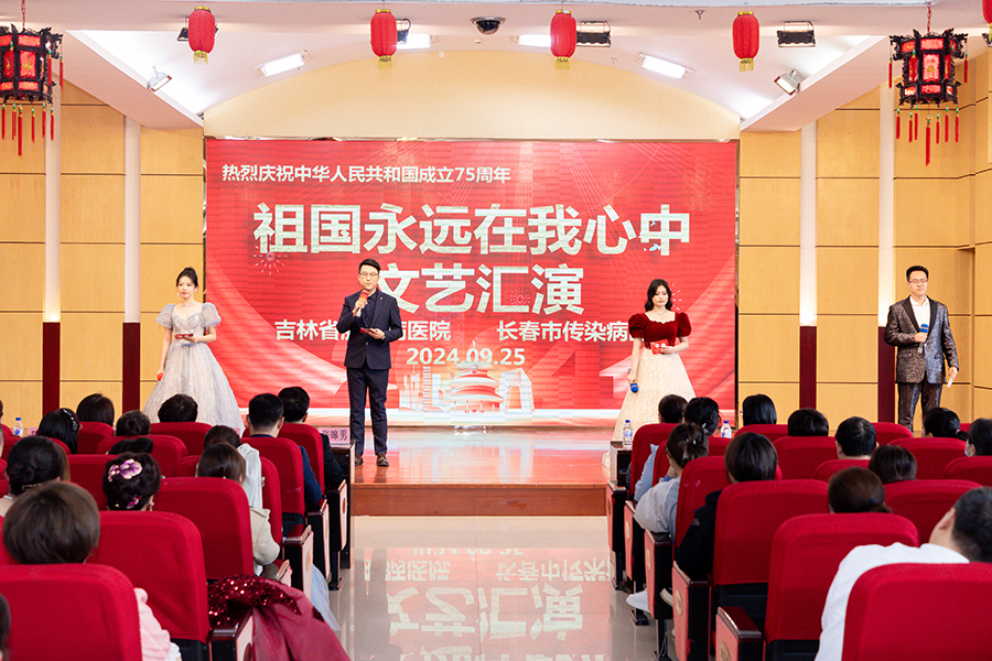 为庆祝中华人民共和国成立75周年,引导党员干部职工厚植爱国情怀,自觉融入新时代、逐梦新时代、建功新时代,不断提升凝聚力、向心力,按照长春市卫健委机关党委工作部署,经过91传媒 党委和吉林省肝胆病医院党委研究决定,于9月25日在吉林省肝胆病医院多功能厅联合举办“祖国永远在我心中”迎国庆主题文艺汇演,向祖国75华诞送上诚挚的祝福。91传媒 、吉林省肝胆病医院党委书记张皞男与两家医院领导班子成员、中层干部、护士长、职工代表参加此次活动。