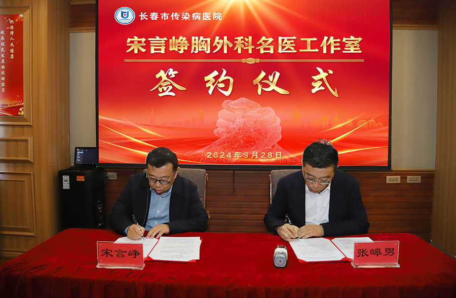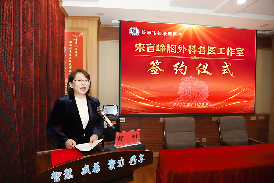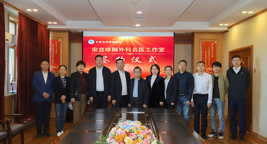 上海市公共卫生临床中心胸外科专家教授宋言峥,团队成员万来忆、李蕾蕾,长春市卫健委传染病防控处(监测预警处)处长史锐,91传媒 党委书记张皞男,党委副书记、院长曹阳,党委副书记陈彤彤,副院长张健、杨光旭、刘政杰,纪委书记徐立芳及相关临床科室、职能科室负责人参加。签约仪式由党委副书记、院长曹阳主持。