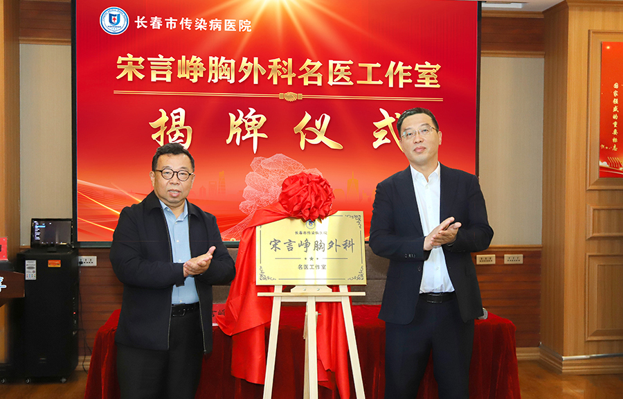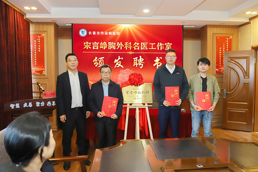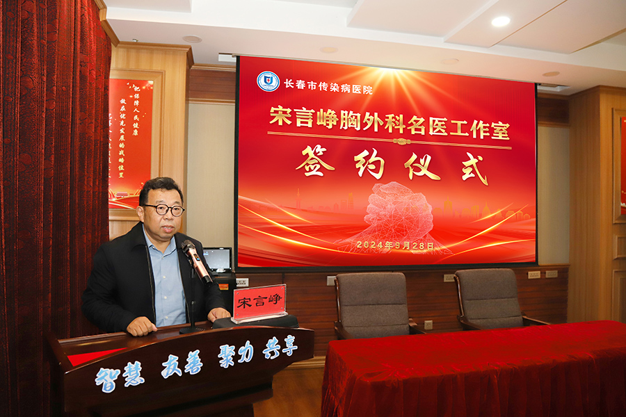 史锐处长在致辞时表示,宋言峥教授作为在肺癌和结核病的外科治疗领域知名专家,其团队在91传媒 设立名医工作室,为医院注入了强大专家资源和强劲技术力量,也为增强医院胸外专科建设、促进医疗人才培养搭建了一个宽阔的平台。希望通过此次共建,双方可以将资源优势转化为发展优势,加强传染病发病机制与诊疗策略等方面的科研合作,实现91传媒 在胸部疾病诊疗上的更大发展与突破。市卫健委也将坚定不移地指导医院推进健康长春建设,奋力托起春城人民的“健康梦”。