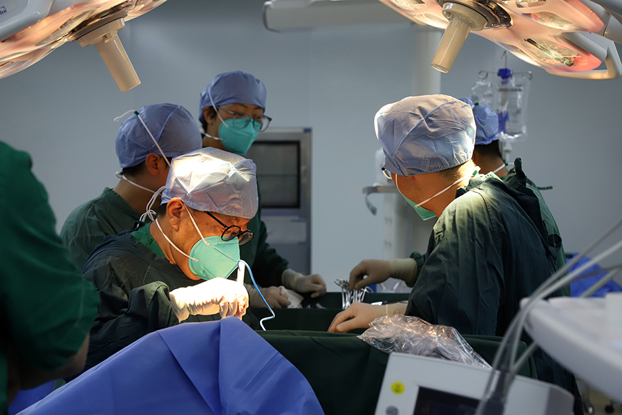 签约揭牌仪式前,宋言峥教授团队深入胸外科病房,进行教学查房和疑难病例讨论,并成功指导完成了一例高难度胸外科手术。