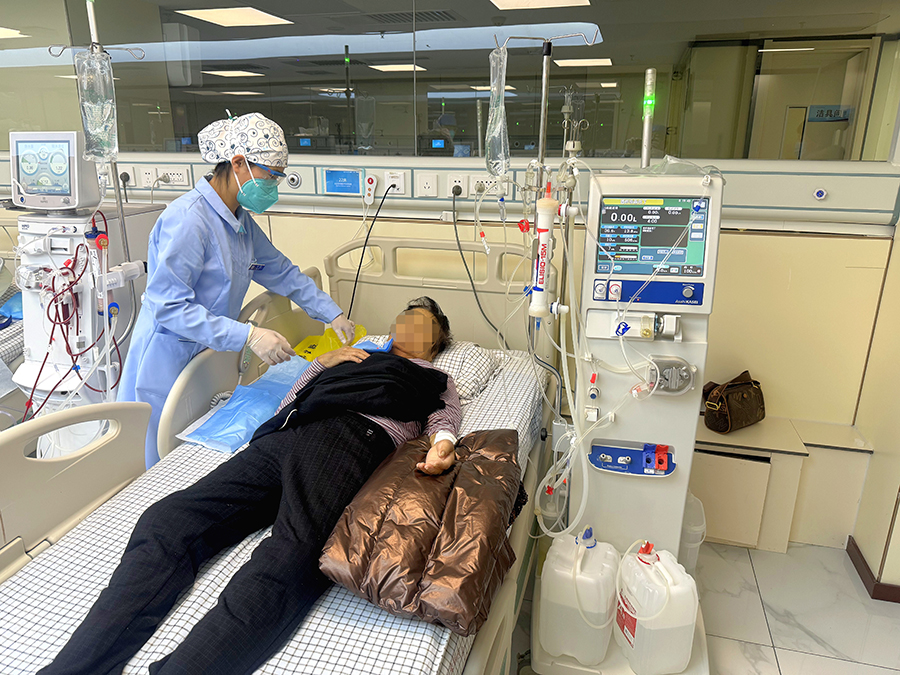 患者被收治入院时,已经意识不清,处于昏睡状态。针对患者复杂的病情,张智勇主任迅速组织科室医生制定个性化的透析治疗方案。