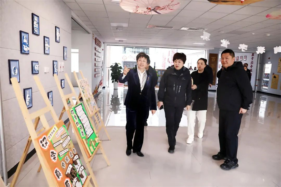 活动中,在张晶书记的带领下,陈彤彤副书记一行参观了学生手工墙、中医文化墙、图书馆以及教室等地。现场还聆听了学生背诵的古文篇章,蓬勃的精神风貌,感染了在场的每一个人。
