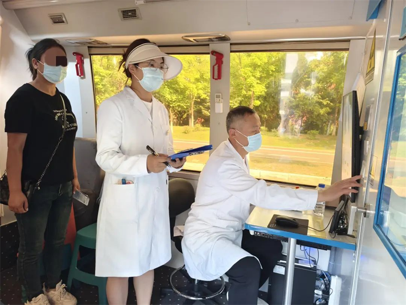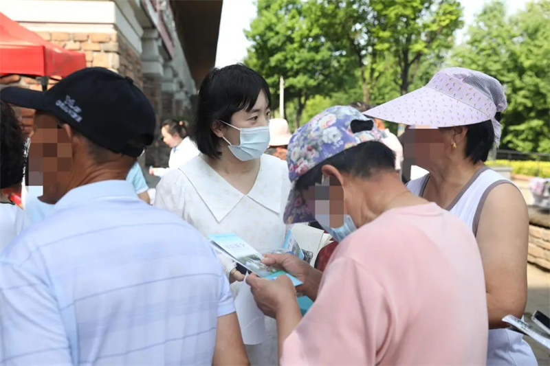 那边,放射线科主任王贺为百姓提供DR筛查,严格把控检查质量,为居民健康精准“把关”。健康管理办公室负责人于旖旎负责登记。由中医科李晓红,呼吸科王莉,综合科郑鹤(神经方向)、张英良(心内方向)、张耀澜、王丽晶等多个学科的专家组成医疗团队,耐心地为居民解答各类健康问题,提供个性化、专业诊疗建议和健康指导,让居民在家门口享受到暖心的医疗服务。许鹤、董佳琦一一为居民发放传单,积极普及健康知识和疾病预防措施,进一步提升居民健康素养。