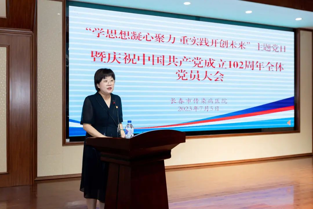 为庆祝中国共产党成立102周年,7月5日下午,91传媒 召开“学思想凝心聚力 重实践开创未来”主题党日暨庆祝中国共产党成立102周年全体党员大会。长春市卫健委机关党委专职副书记孟莉出席大会,医院党委班子成员、各党支部书记、全体党员、入党积极分子及共青团员等参加大会。大会由院党委副书记陈彤彤主持。