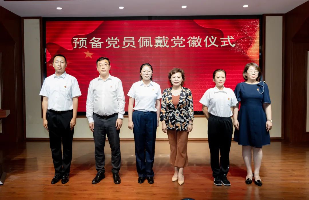 会上,市卫健委机关党委专职副书记孟莉,院党委书记张皞男,院党委副书记、院长曹阳,为预备党员佩戴党徽。