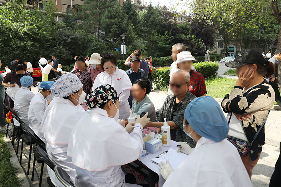 此次义诊得到医院各党支部和健康管理中心医护人员的大力支持。活动现场,医护人员有条不紊地为前来问诊的群众提供报告解读、用药指导、疾病防控、科普宣教等健康服务,并为现场群众免费进行血压、血糖、血氧等体格检查。为了给咨询的患者提供更好的诊疗方案,医护人员们详细询问身体状况,耐心细致地分析病情,认真解答关于疾病的预防诊治及愈后等问题,并就夏季常见传染病、多发病以及结核病的预防等方面进行了宣教讲解,帮助大家树立自我防范意识和健康生活方式。